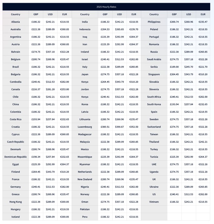 Country Fixed Hourly Rates Across 100+ Jurisdictions
